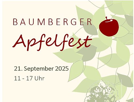 Am Sonntag, den 21. September 2025 findet das 13. Baumberger Apfelfest auf dem Alten Hof Schoppmann in Darup statt.
