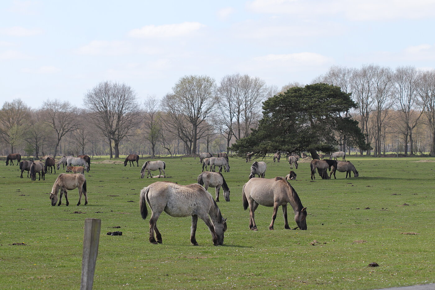 NSG Wildpferdebahn Merfelder Bruch (Dülmen): Mehr als 400 Dülmener Wildpferde weiden ganzjährig in der Heubachniederung. Die golfrasenmäßig abgeweideten Grünlandflächen sind in weniger stark gedüngten Bereichen aber vergleichsweise artenreich ausgebildet. Insbesondere auf nicht gedüngten Böden können sich durch Beweidung mit Pferden wertvolle Magerweiden wie die Geest-Rotschwingelweide entwickeln.
