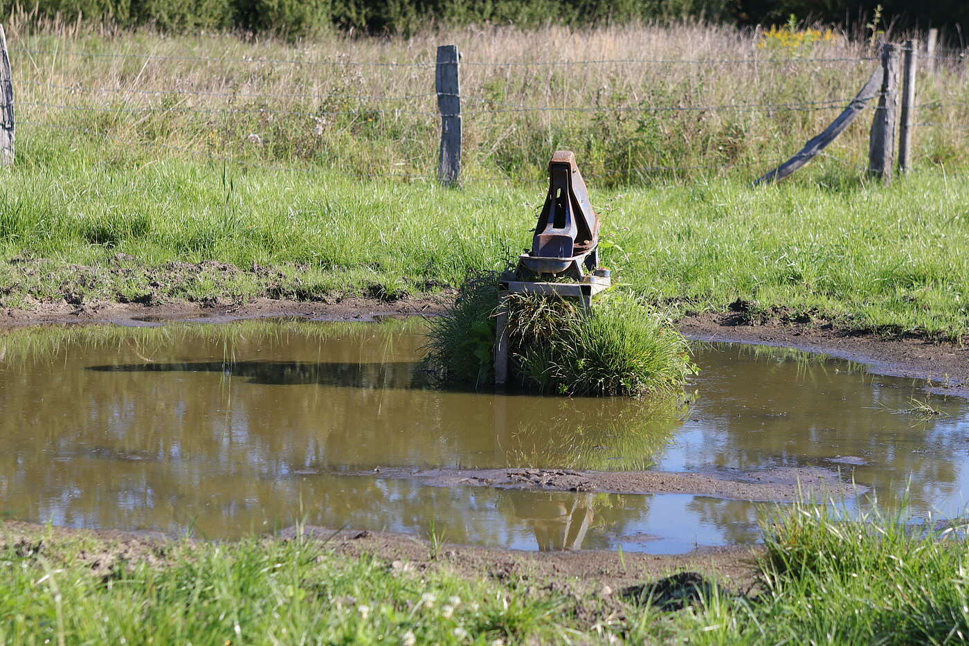 NSG Am Teufelsbach (Lüdinghausen): Nach Abtrocknung des Bodens wächst das Mäuseschwänzchen im Bereich der Tränke.